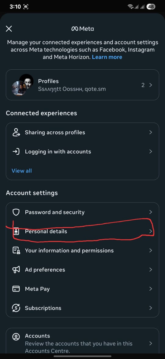 go to personal details